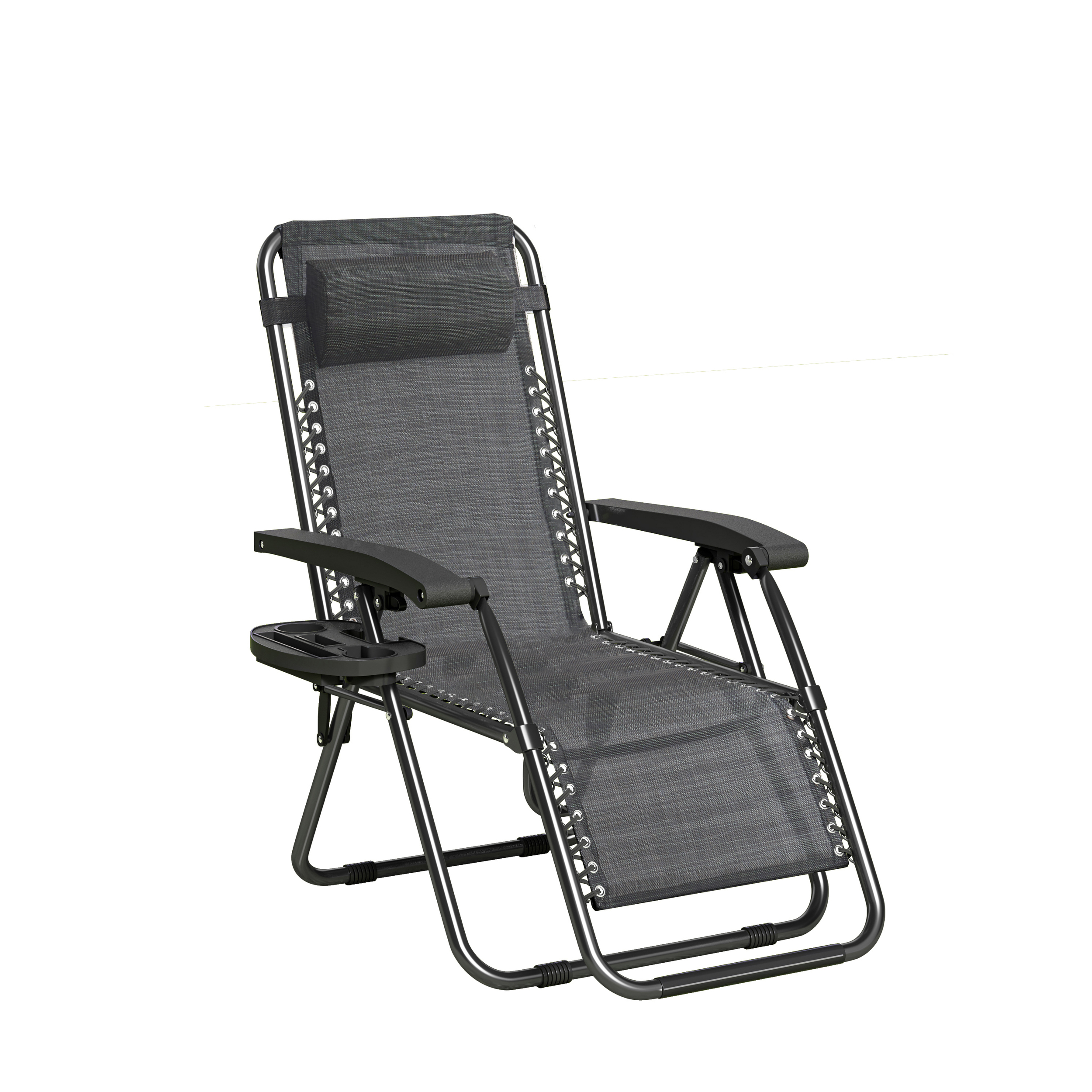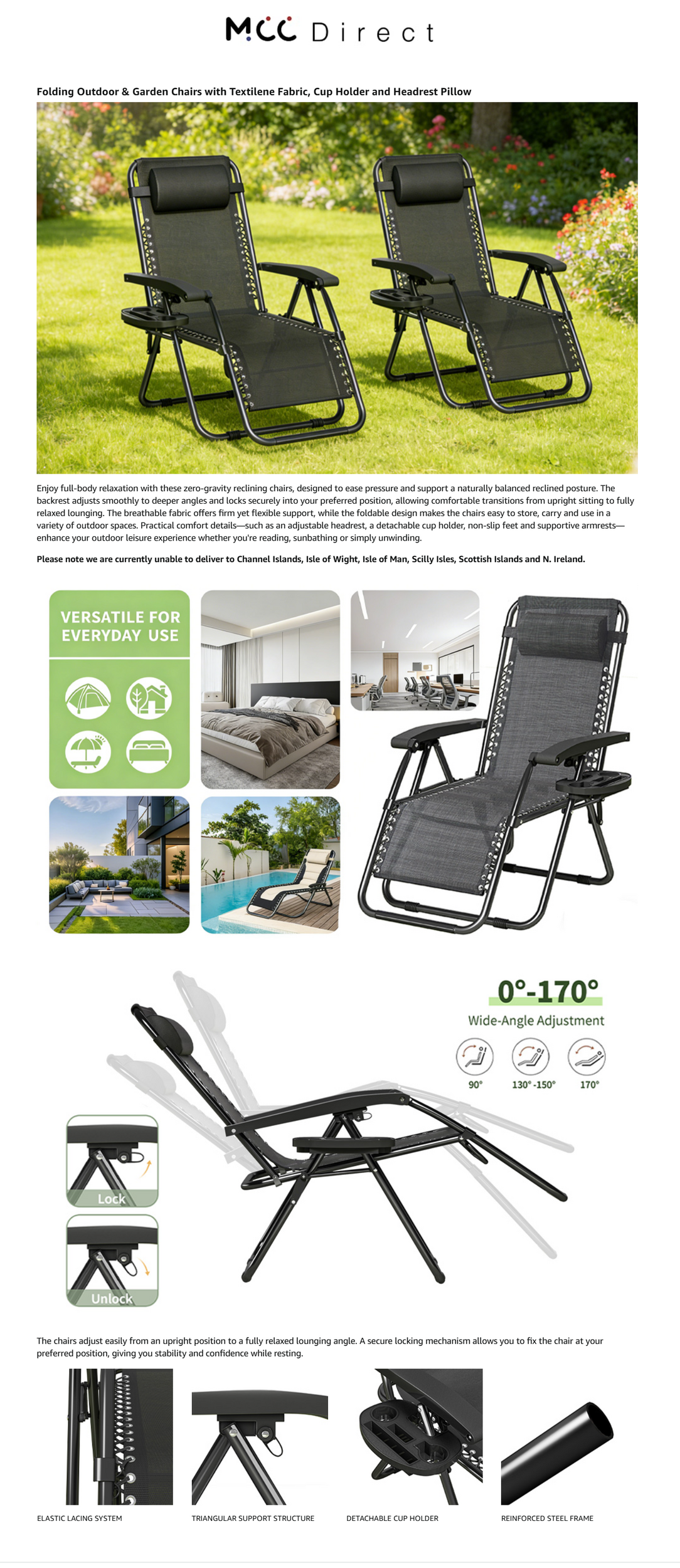 mcc direct Zero Gravity Reclining Chair Set of 1 – Folding Outdoor & Garden Chairs with Textilene Fabric, Cup Holder and Headrest Pillow – TEXTILENE